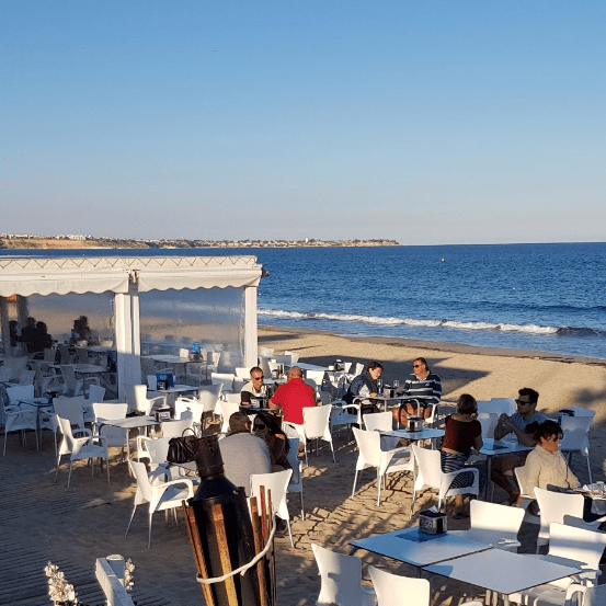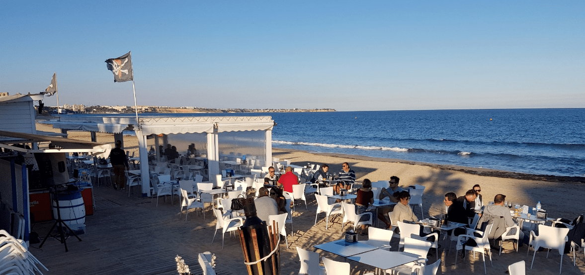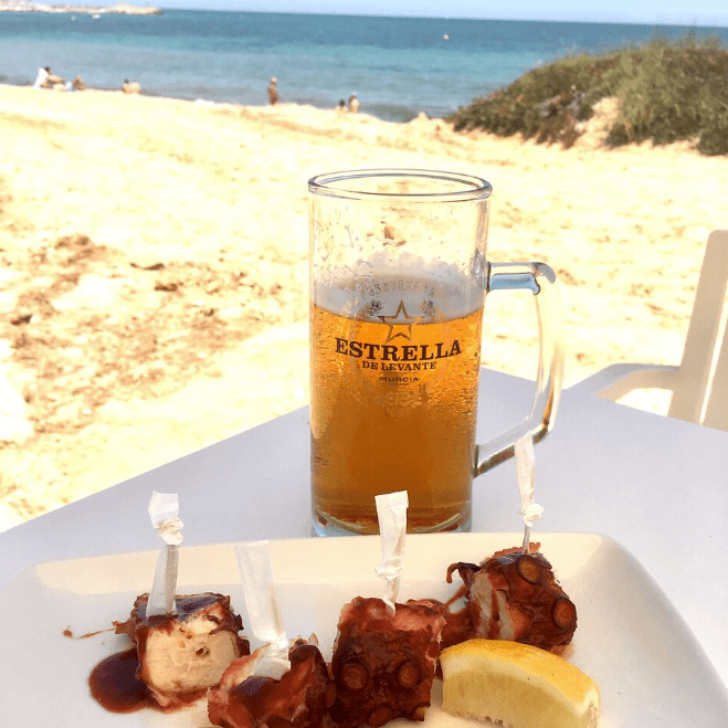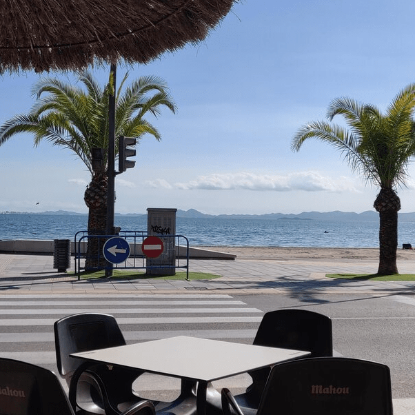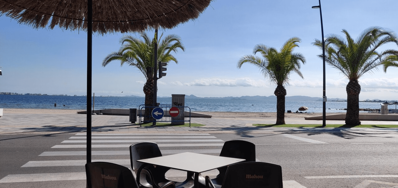Her kan du nyte sommeren i strandkanten med fantastisk utsikt til La Manga og en enklere lunsj med noe godt i glasset.